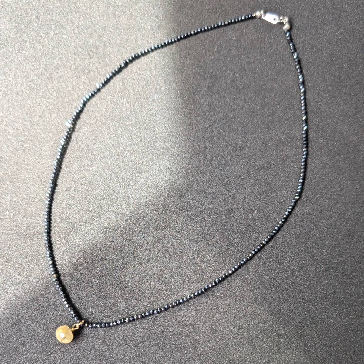 - ゴールド ルチルクォーツ ブリオレットカットチャーム チタン加工 スピネル パワーストーン ネックレス 長さオーダー可 父の日に贈りもの