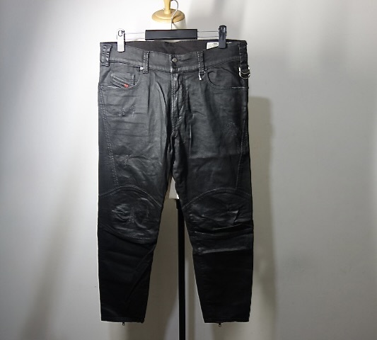 - TK 新品近 ディーゼル DIESEL 裾ジップ コーティング バイカーパンツ 34
