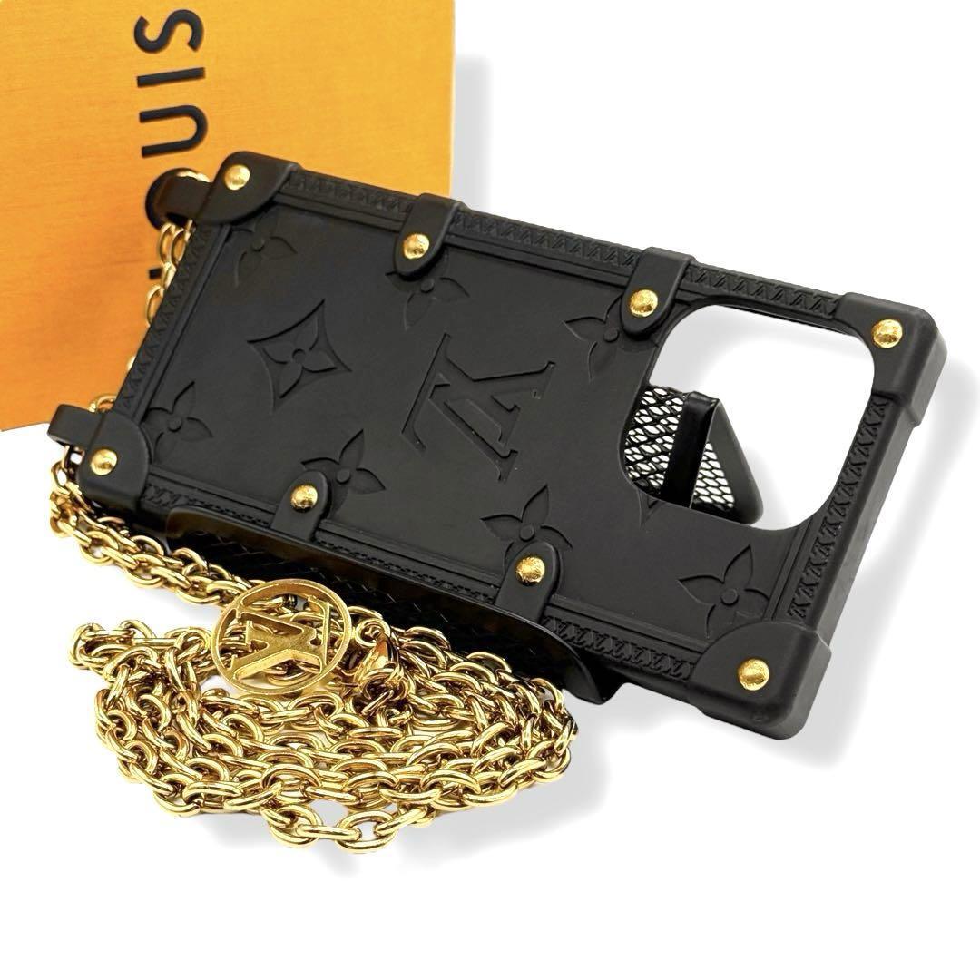 - ルイヴィトン iphone14pro ケース チェーン ストラップ M81997 リ トランク iphone14 pro モノグラム エンボス ブラック スマホ co17