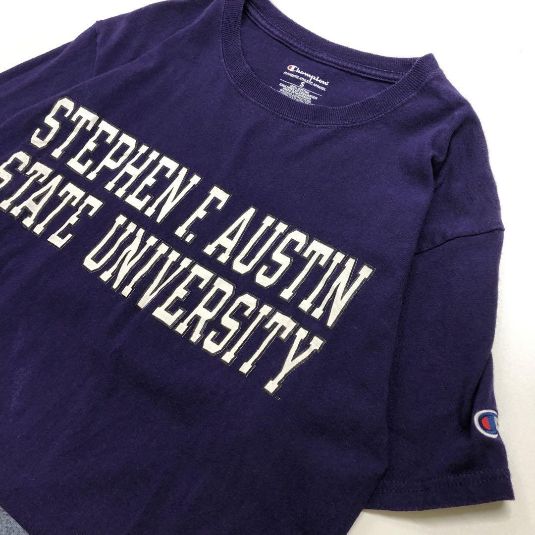- Champion カレッジロゴ 半袖Tシャツ 紫 メンズS