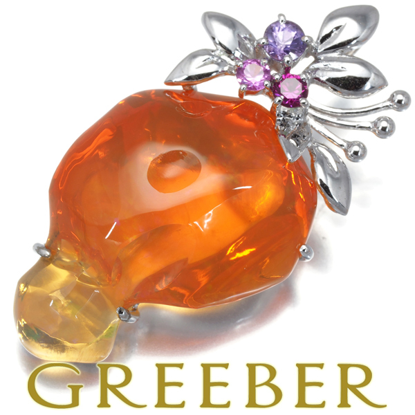 > ファイアオパール 15.23ct サファイア 0.28ct ペンダントトップ K18WG ソーティングGENJ 限界値下げ品