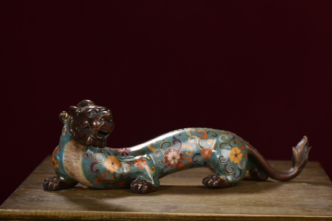 - 蔵友旧蔵出 銅製 景泰藍 琺瑯彩 纏枝花紋 爬龍 貴重品 置物 古賞物 中国古玩 中国古美術品