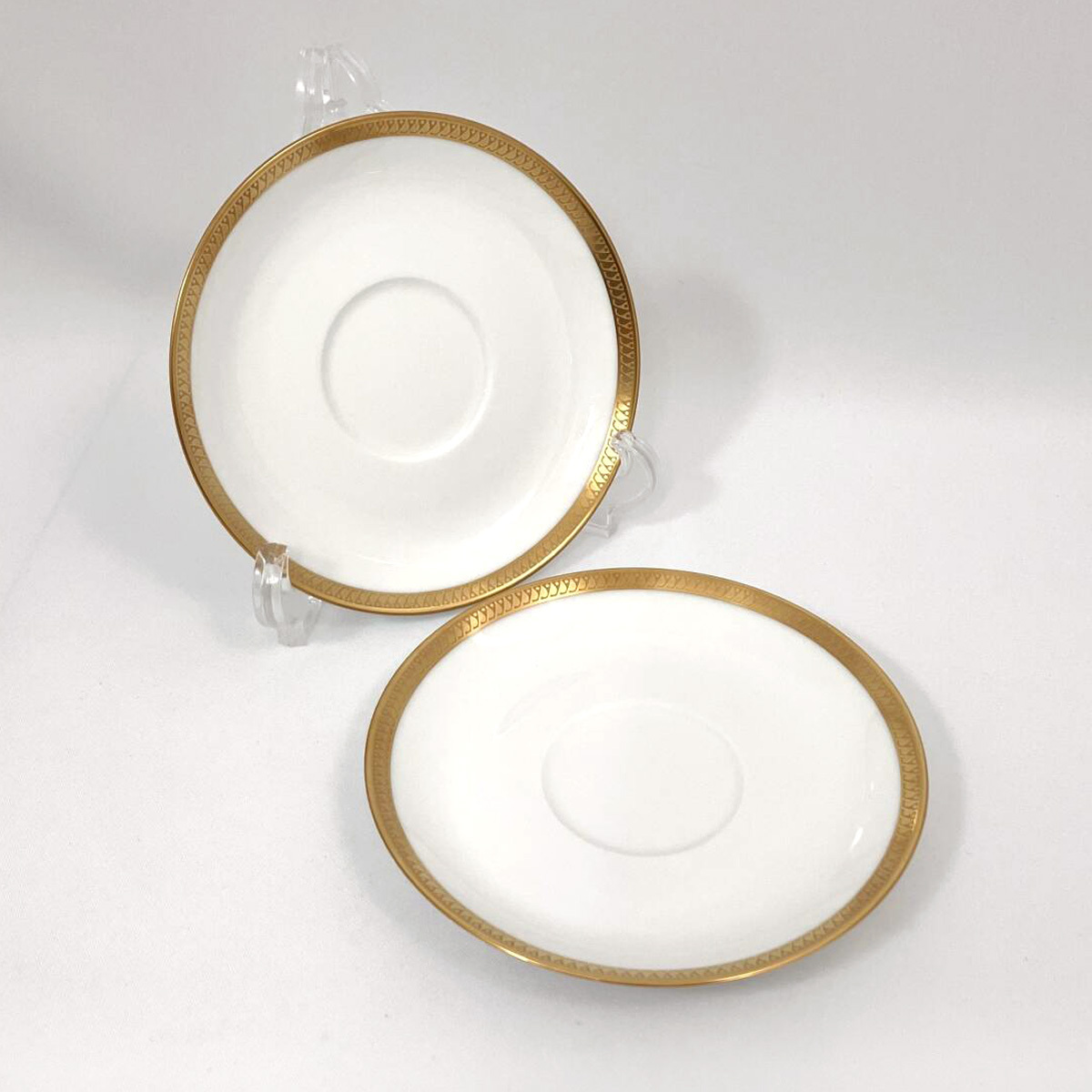 - 【美品】大倉陶園 片葉金蝕 ソーサーのみ 2枚セット ペア 金彩 白磁 OKURA