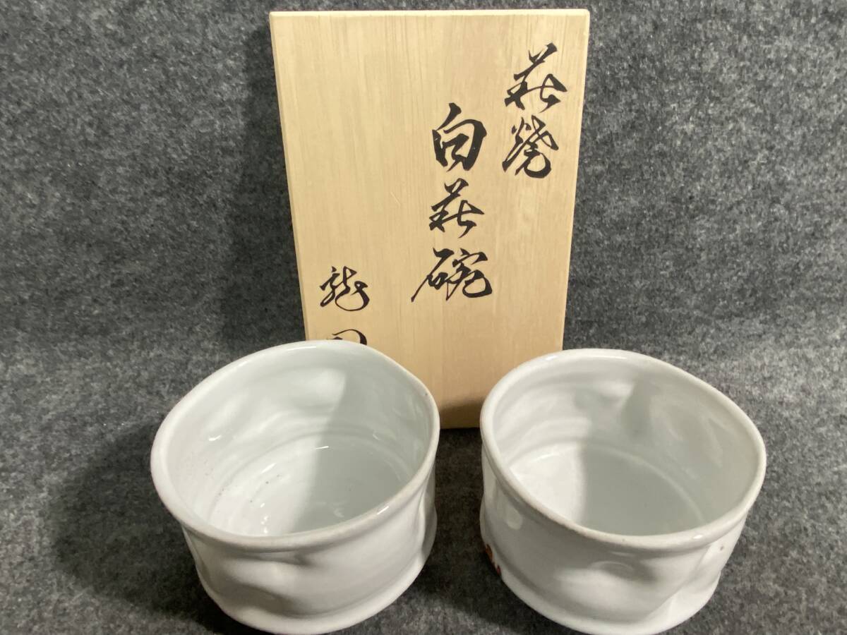 - 【和食器】萩焼 白萩碗 七化け 松野龍司作 2組 元箱