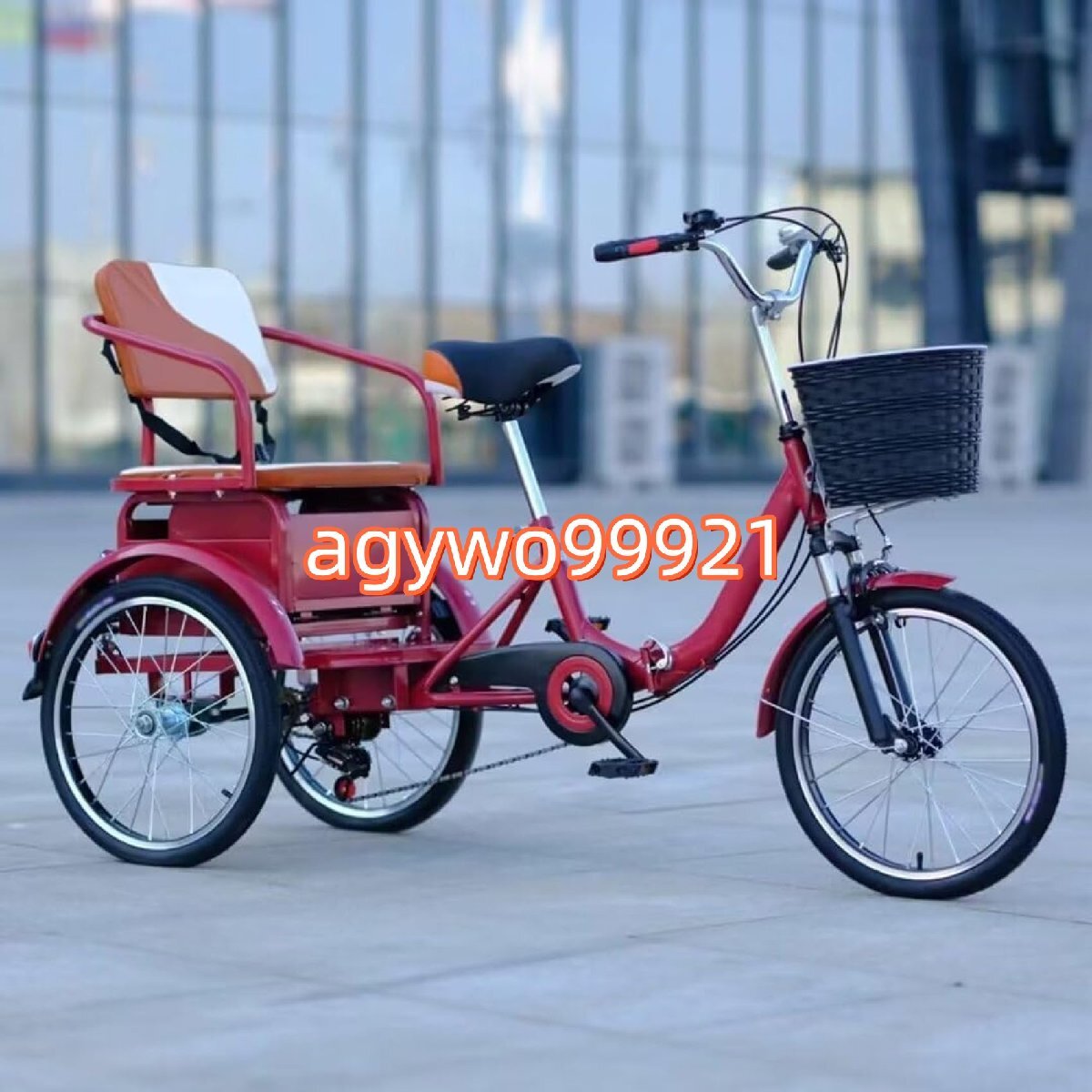 - 三輪自転車 3輪バイク ダブルブレーキ シニア転ばない自転車 高齢者用三輪車ペダル 後部座席付き 滑り止めグリップ 可変速度三輪車