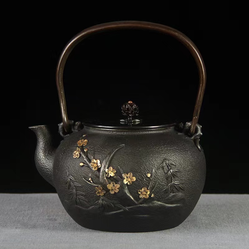 - 美品☆鉄壺 メラン菊 南部鉄器 コーティングなし 手作り鉄 やかんを沸かす お茶の道具 1400ML