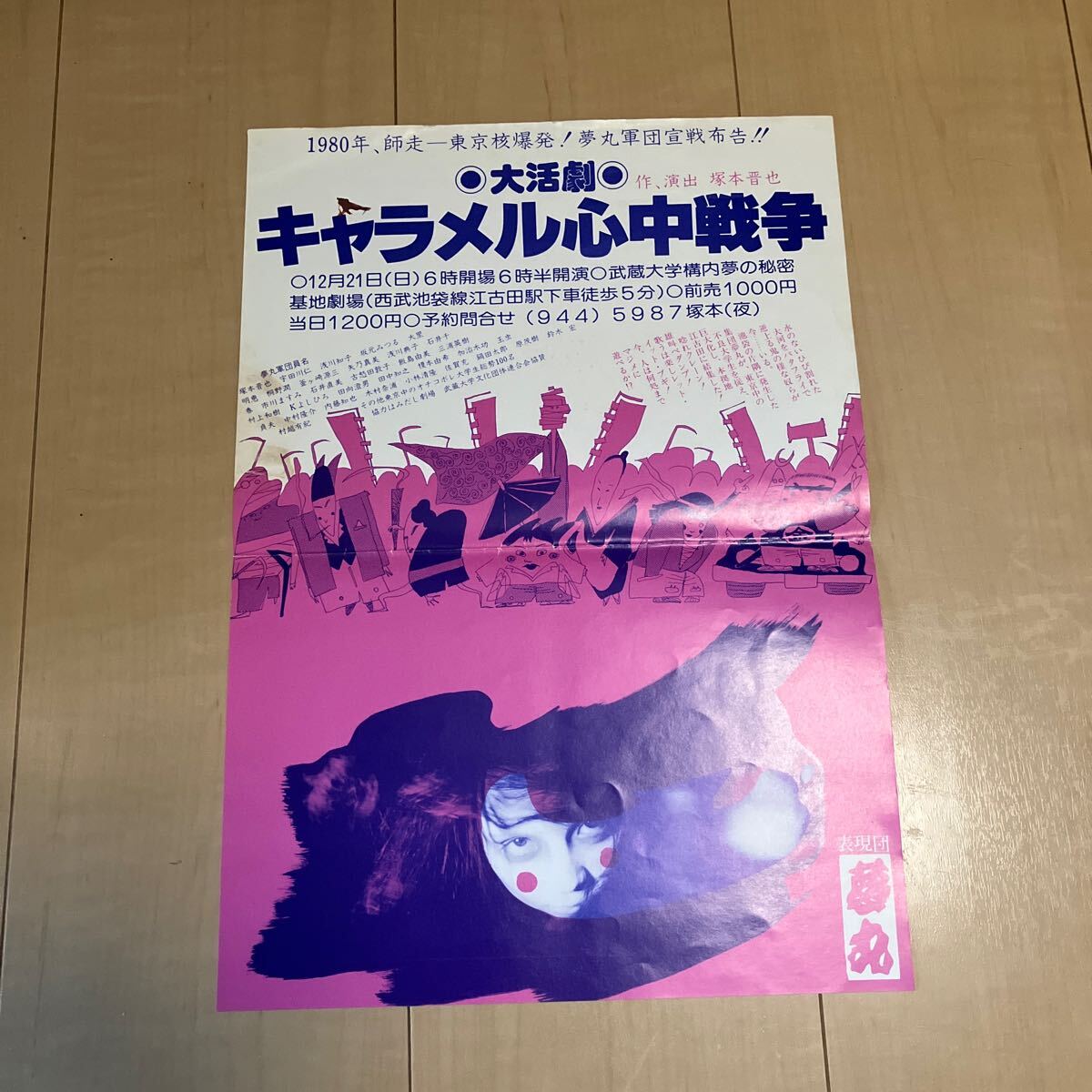 - 劇団 フライヤー「塚本晋也:表現団夢丸『◎大活劇◎キャラメル心中戦争』」B4 二つ折 片面印刷 海獣シアター