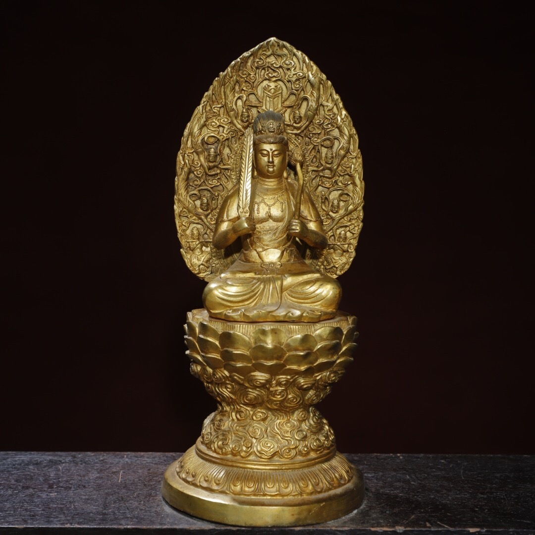 - 【超珍館蔵】銅製 塗金 文殊菩薩像 仏像 宗教 仏教古美術 供養品 古賞物 古董品 古美術品 時代物 旧家蔵出 稀少珍蔵品