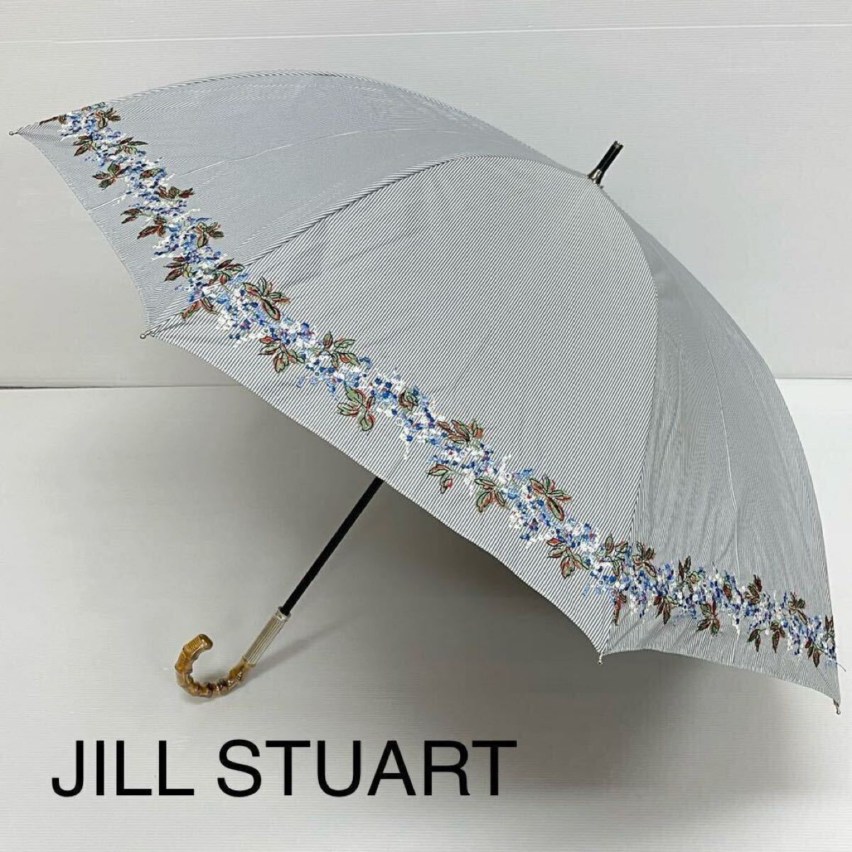 > 新品52894 ジルスチュアートJILL STUART* ストライプ フラワー刺繍 遮光99%遮蔽率99%以上遮熱晴雨兼用日傘雨傘 UVカット遮蔽紫外線対策