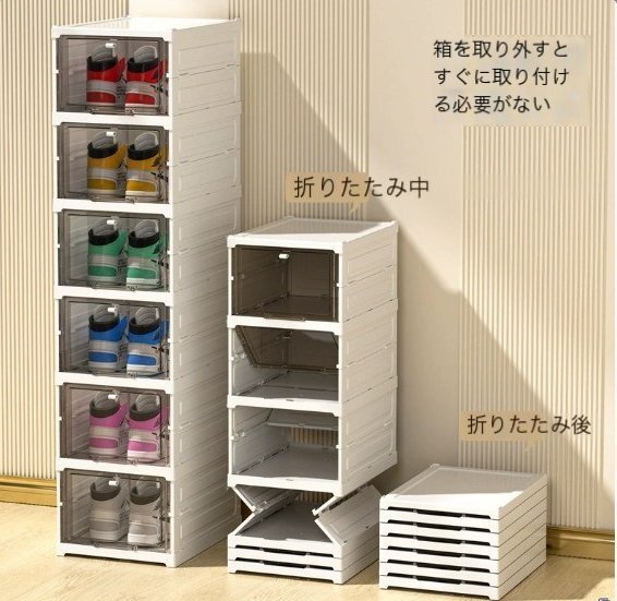 - 折りたたみ可能一体型靴箱厚め収納靴箱透明可取付防塵防湿多層重ね合わせ