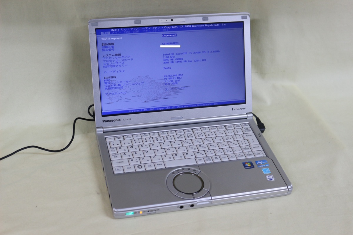 - ジャンク品ノートパソコン Panasonic Let's note CF-NX1 COREi5 メモリ4GB HDD無 12.1inchワイド カメラ内蔵 起動確認済 代引き可