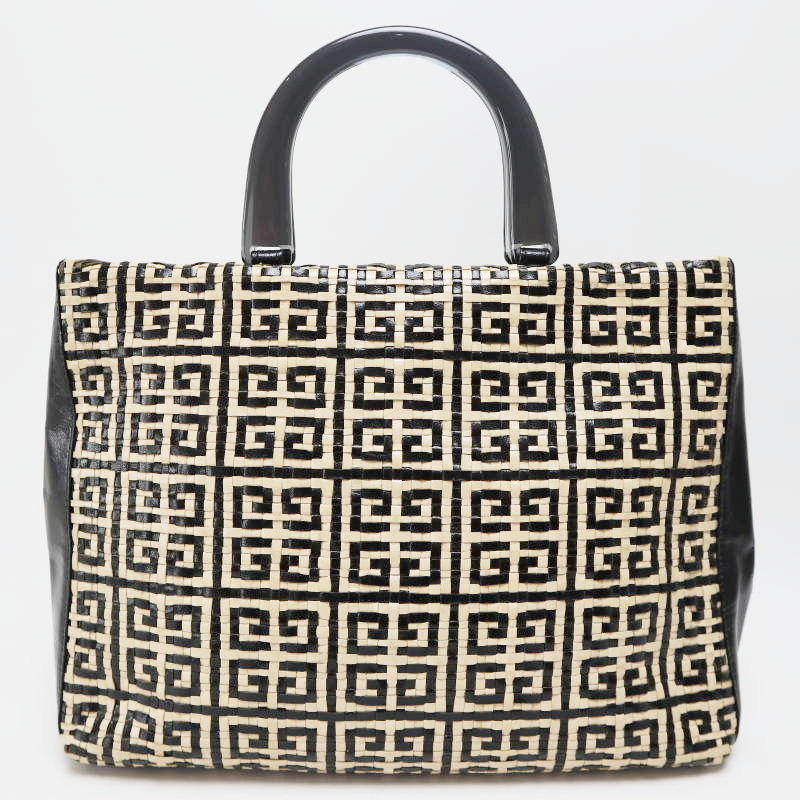 > M06-k006 GIVENCHY ジバンシー ロゴ総柄 編込みレザー/プラスチックハンドル ハンドバッグ トートバッグ ベージュ/ブラック