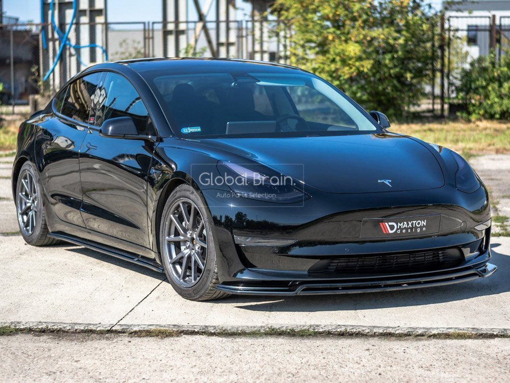 - テスラ モデル3 フロント リップ スポイラー V2/ フロント スプリッター エプロン バンパー アンダー ディフューザー エアロ