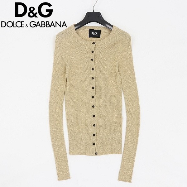 - 国内正規品◆D&G ドルチェ&ガッバーナ シルク ラメ混 リブニット タイト カーディガン ベージュ S