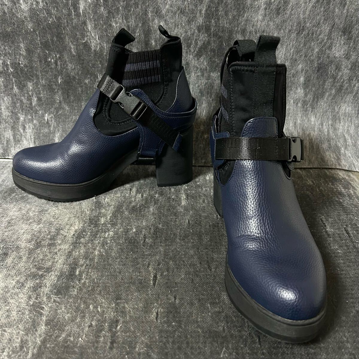 - YOSUKE ヨースケ サイドゴアブーツ ショートブーツ ヒール 40 25cm程 ネイビー *EO