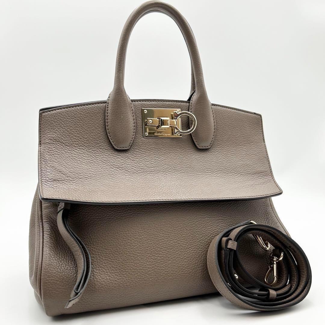 - 現行 FERRAGAMO サルヴァトーレフェラガモ スタジオ 2way ショルダー トートバッグ ハンドバッグ レザー ゴールド金具 ガンチーニ スタッズ