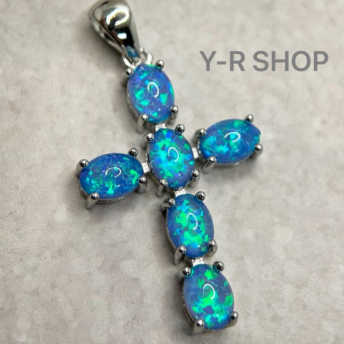 - ブルーファイヤーオパール のクロスデザインペンダントトップ ★レディースネックレスシルバー925刻印カラーストーン ハワイアン新品Y-R