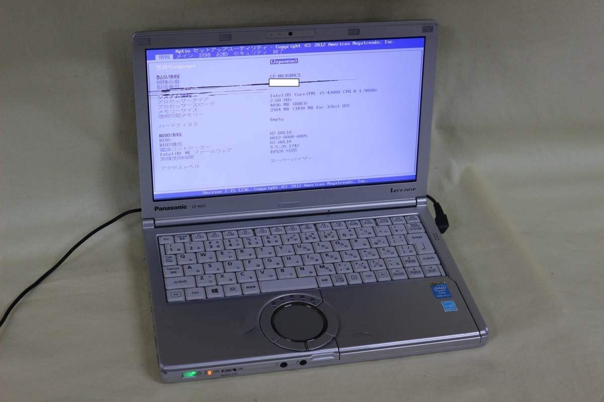 > ジャンク品ノートパソコン Panasonic Let's note CF-NX3 COREi5 メモリ4GB HDD無 12.1inchワイド カメラ内蔵 起動確認済 代引き可