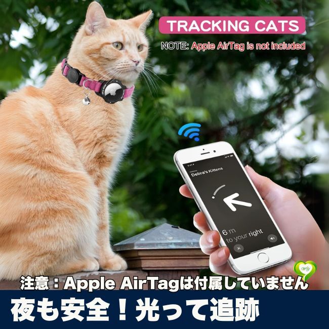- 【夜も安全!光って追跡】AirTagフォルダー付き首輪 犬 猫用 光反射素材 迷子防止 夜間 散歩 安全 追跡可能 人気 おすすめ