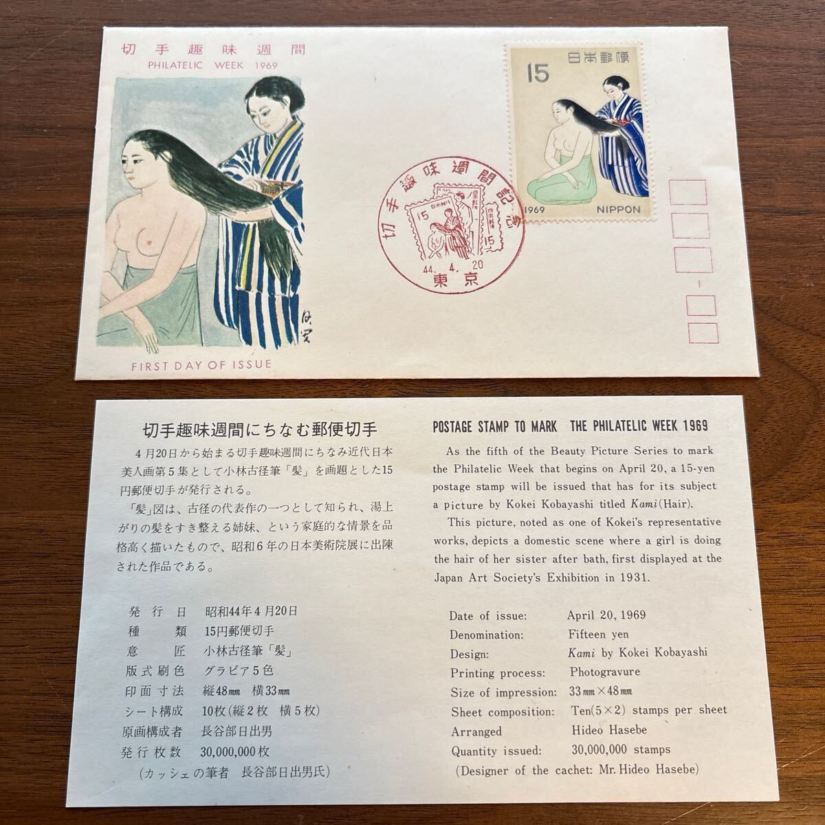 - 切手 切手趣味週間 初日カバー FDC 初日印 初日記念カバー スタンプ 押印 1969 昭和44年 小林古径 髪