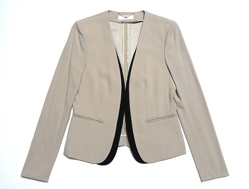 > 定価4.62万 美品 Beige. ベイジ CINDY シンディ ダブルカラー ジャケット ベージュ×ブラック トリアセテート レディース 2 テーラード