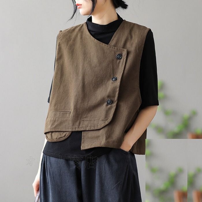 - ベスト レディース 綿 麻 Vネック 袖なし 前開き ノースリーブ ゆったり シンプル おしゃれ 春夏 秋 女性 日常 可愛い 上着 プル