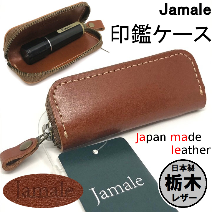 > ■未使用■Jamale 本革 レザー 印鑑ケース 栃木レザー 牛革 定価4290円 ブラウン ハンコ はんこ シャチハタ メンズ レディース ジャマレ L6