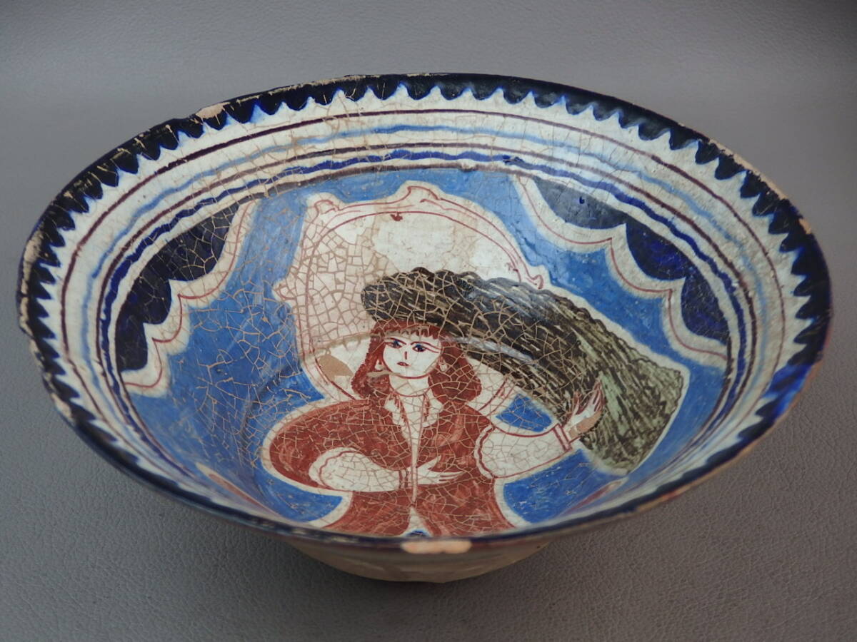- 【骨董・茶道具】★古い イスラム陶器 古代ペルシャ★★女性文鉢 gk046sl.7 ラスター彩 ファイアンス
