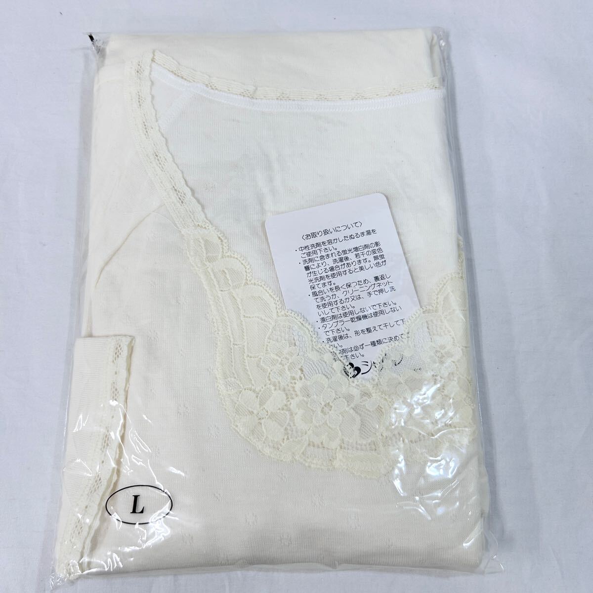 - ★未使用品★L★ 新品 charle シャルレ 長袖インナー 日本製 綿毛混 綿85% 毛15% 肌着 Lサイズ アイボリー レディース 婦人 (06027E