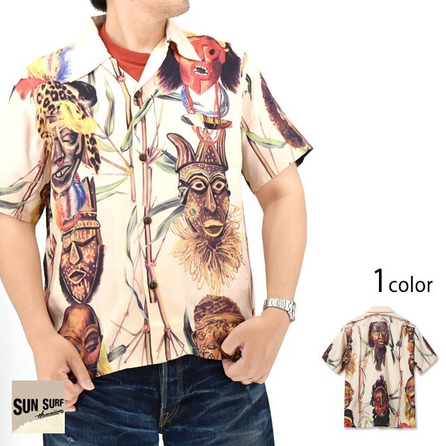 - SPECIAL EDITION レーヨンアロハシャツ「BATTLE MASK」◆SUN SURF オフホワイト Sサイズ SS39481 サンサーフ ハワイアン 日本製