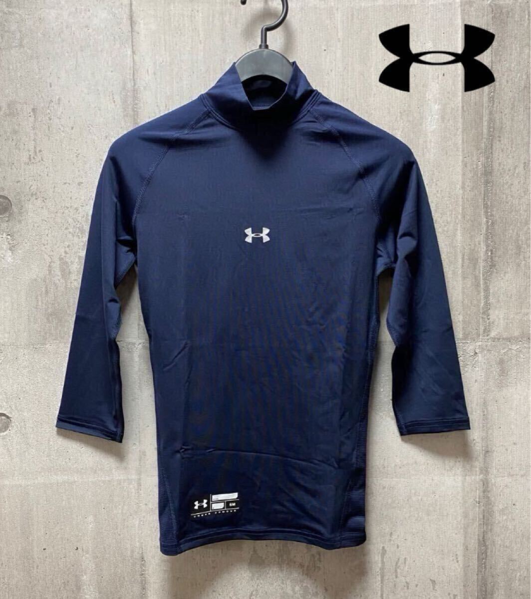 - 未使用 正規品 Sサイズ アンダーアーマー メンズ UA ヒートギア コンプレッション3/4モック七分袖 夏用 ネイビー 野球