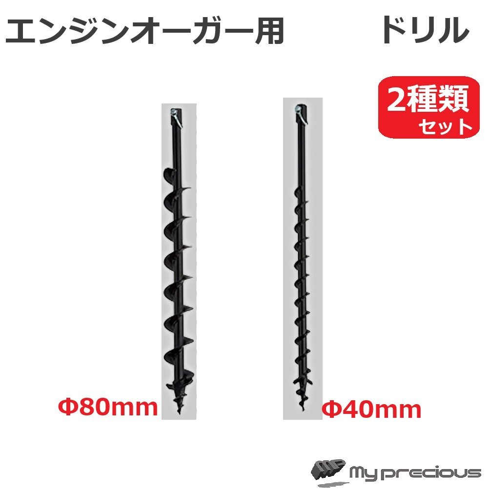 - 穴掘り機用ドリル 2本セット【 φ40mm+φ80mmセット】エンジンオーガー アスクワークス 交換用ドリル 杭打ち 穴開 ★送料無料