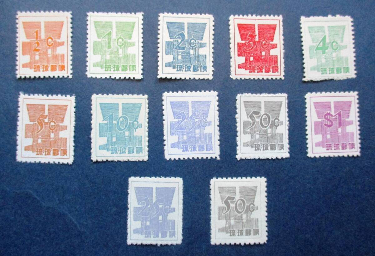 - 沖縄切手・琉球切手 ドル表示数次切手 12種完 OB13 お届けの切手は画像の切手ではないですが、同等の品で美品です。確認済です。