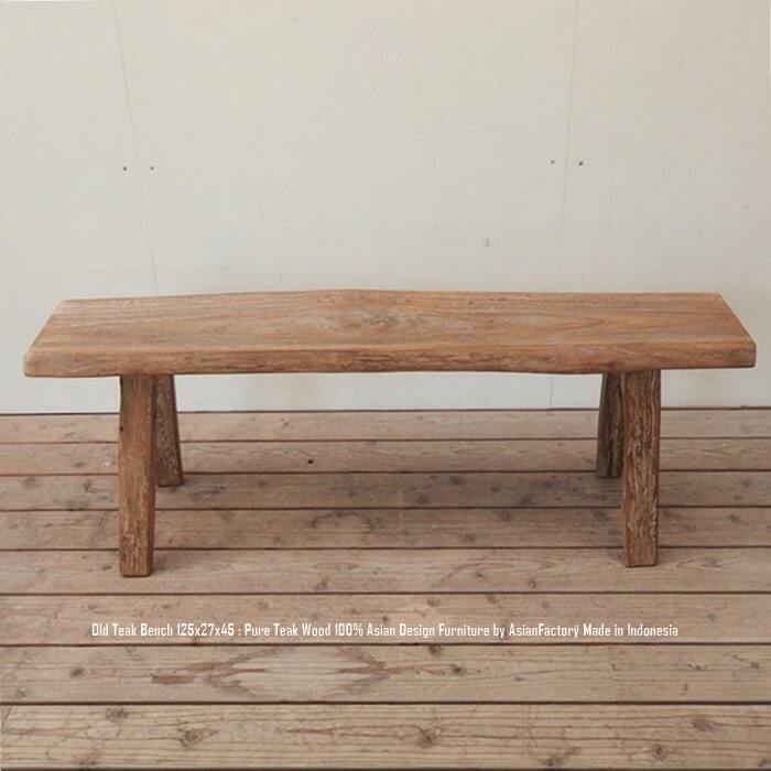 - 一点物 オールドチーク 125cm 木製 ベンチ 木 総無垢材 一枚板 飾り台 アジアン家具 長椅子 木製いす 天然木 椅子