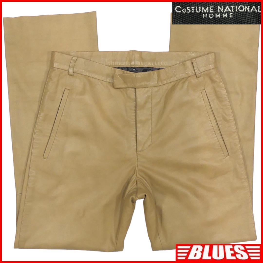 > 即決★イタリア製 CoSTUME NATIONAL HOMME★W29位 レザーパンツ コスチュームナショナルオム 44 メンズ ベージュ 本革 本皮