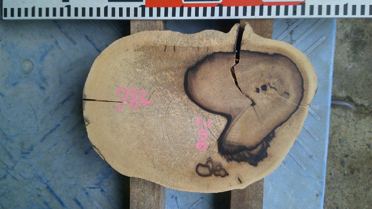 - 18-102 黒柿(カキ)の輪切り乾燥材・・・・敷板・花台・ペン・万年筆・縞柿・孔雀杢・オブジェ・DIY