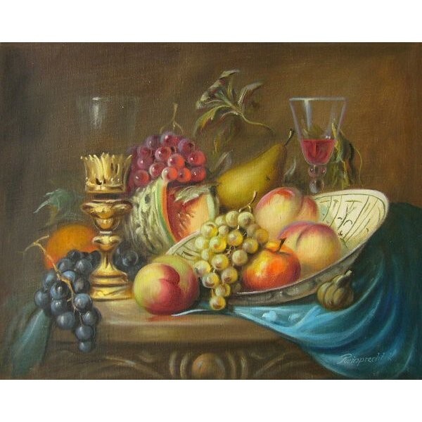 - ヨーロッパ絵画 肉筆油絵 (額縁付きで納品対応可) サイズF6号 レインプレヒト作 「静物」
