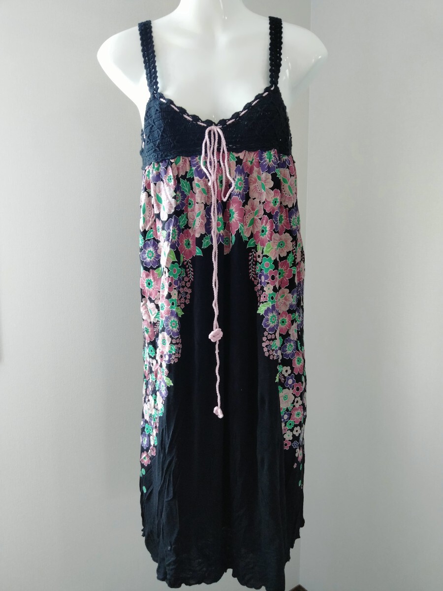 - スカラーScoLar★セクシーで可愛いデザイン! 胸元切り替え キャミソールワンピース 花柄 黒