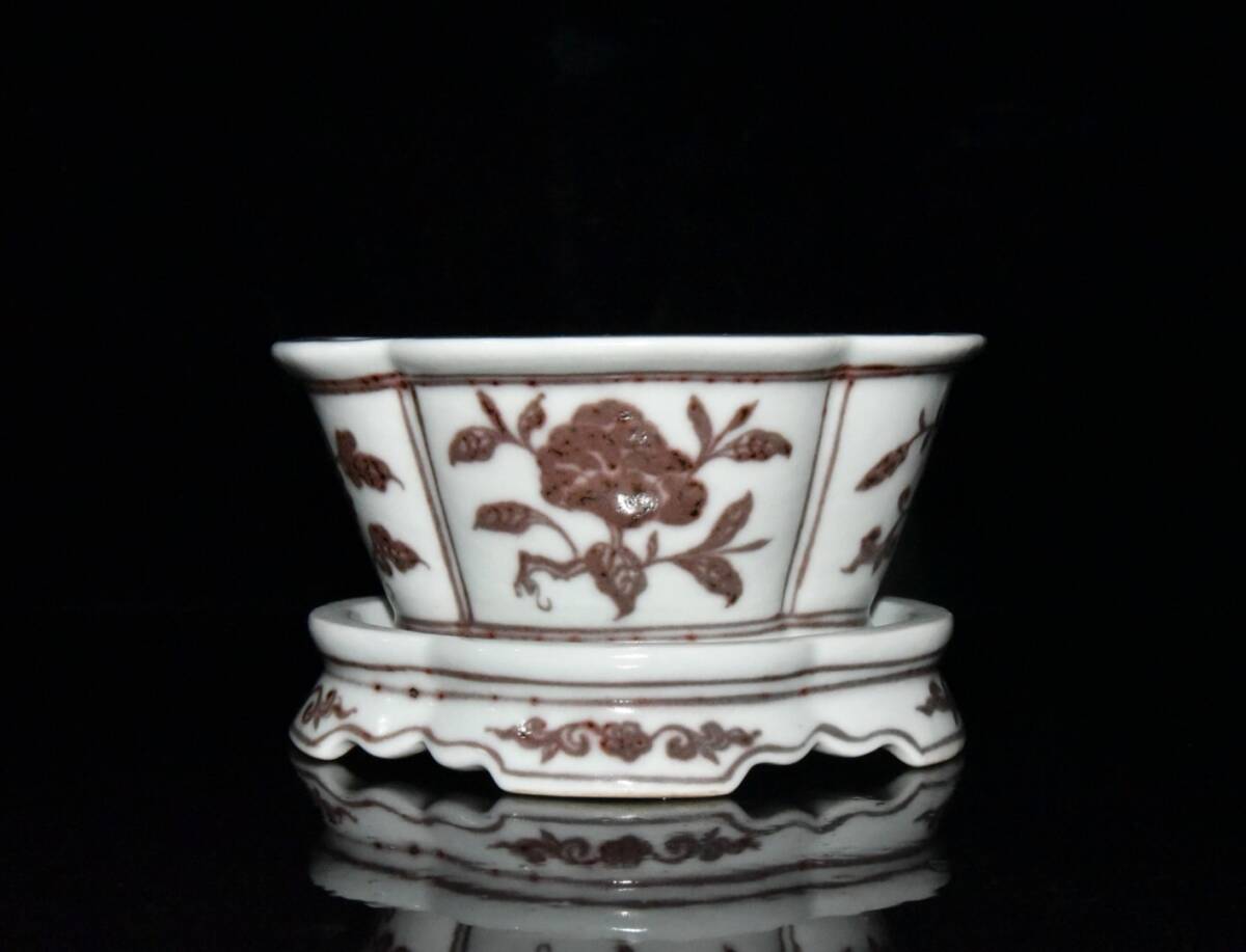 - 【超珍館蔵】明 宣德年製款 古陶瓷品 釉里紅 花卉紋 花盆 陶藝 古賞物 古董品 古美術品 時代物 旧家蔵出 稀少珍蔵品