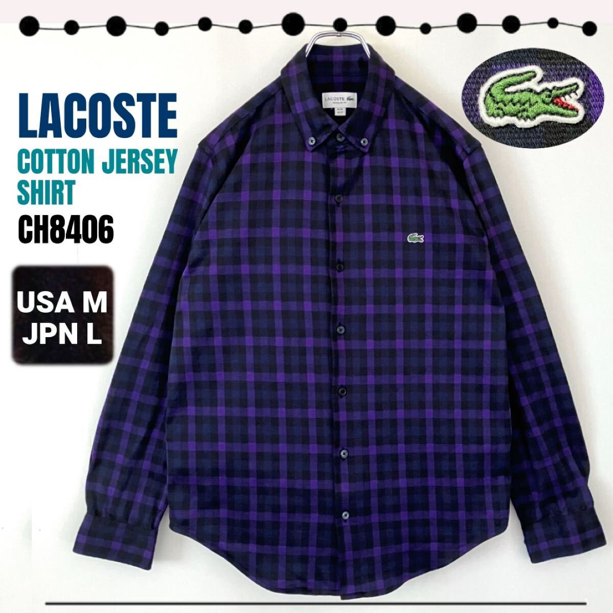 > ラコステ/LACOSTE★チェックジャージボタンダウンシャツ★長袖★サイズ40/USAメンズM/JPNメンズL