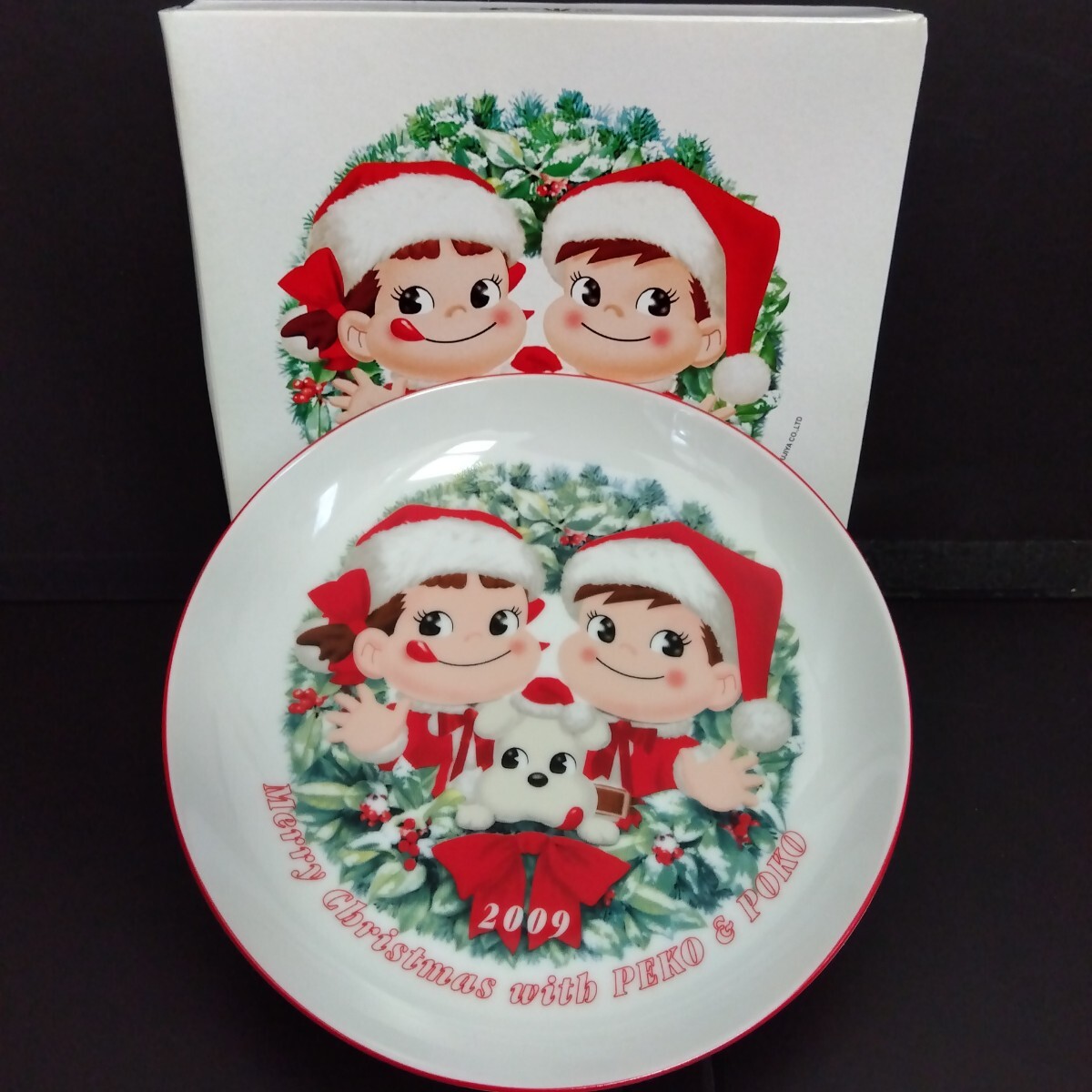 - 希少★未使用 非売品 ★不二家 ペコちゃん ポコちゃん クリスマス プレート 絵皿 皿 2009年 ☆★レア 即決