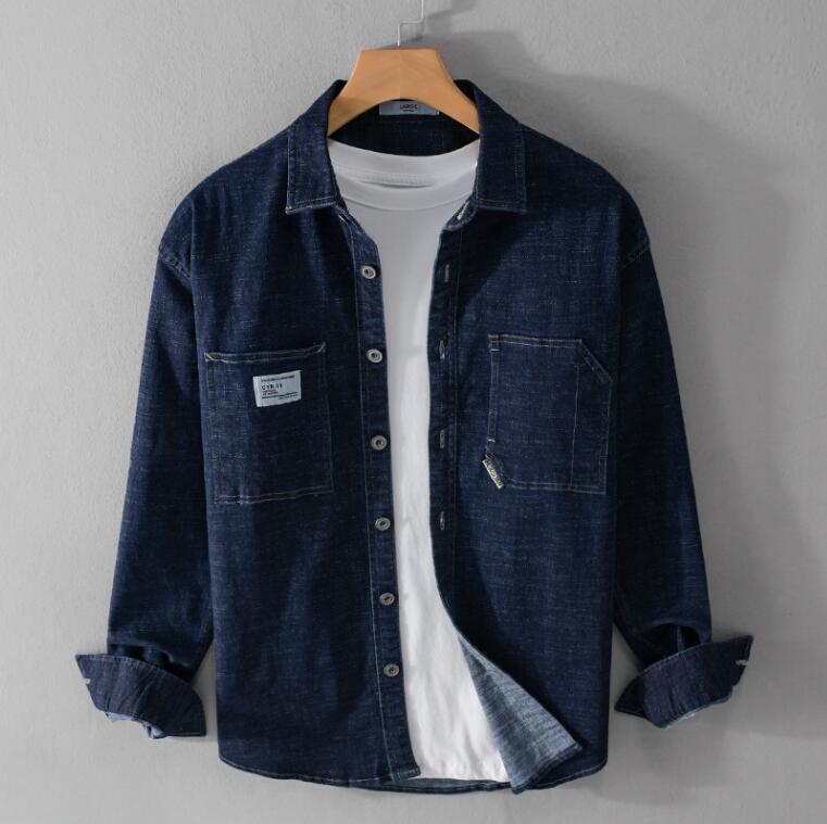 - 人気推薦 / デニムジャケット メンズ 長袖 デニム ワークシャツ ウエスタンシャツユーズド加工 インディゴ ネイビー / M-3XLサイズ選択可