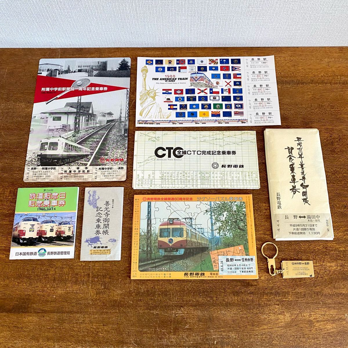 - 当時物 記念乗車券 長野電鉄 8点セット / 鉄道グッズ パズル キーホルダー 乗車券 善光寺御開帳 まとめめ
