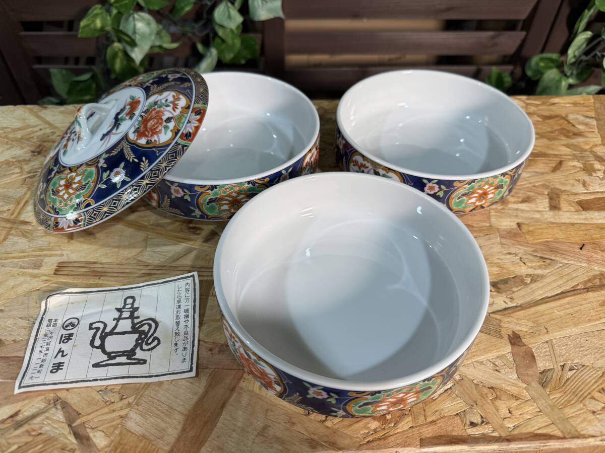 - 【和食器】昇龍釜 三段 蓋付き鉢 重ね鉢 和風 取り鉢 3客セット 花柄 九谷焼 美濃焼 有田焼 昇龍 縁起物