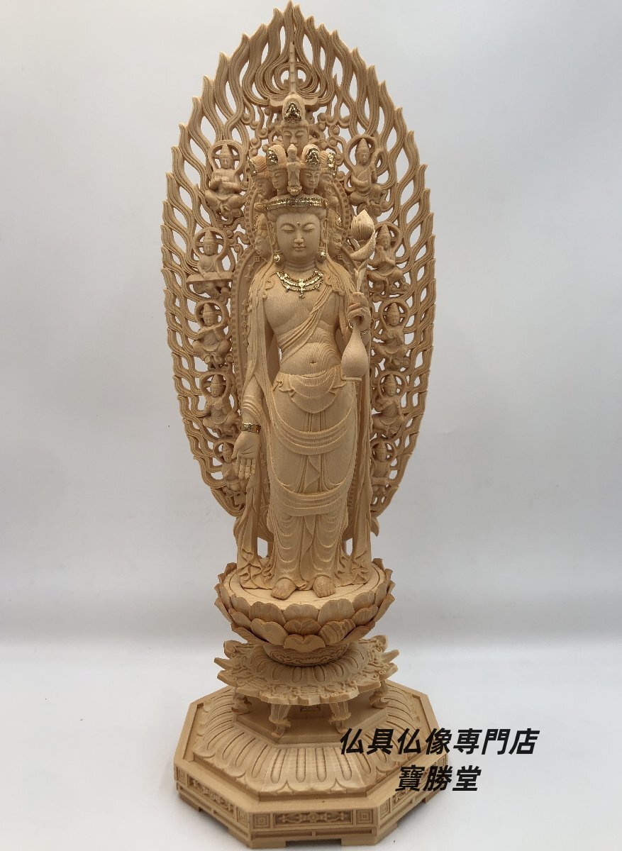 - 総檜材 木彫仏像 仏教美術 精密細工 仏師で仕上げ品 切金 十一面観音菩薩立像 高さ38cm【送料無料】【仏具仏像専門店寶勝堂】