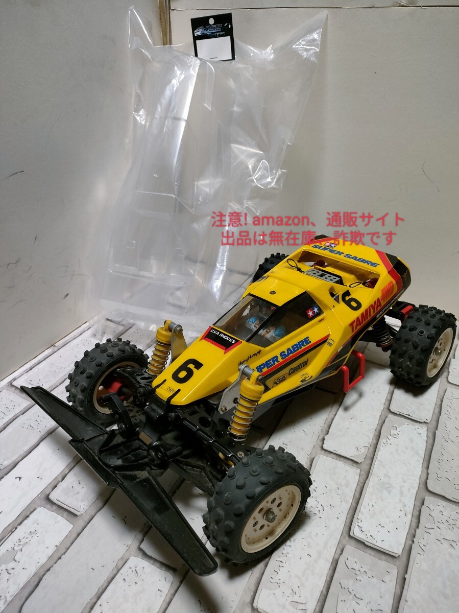 - 希少。ビンテージTAMIYA 当時物!4本ダンパー仕様SUPERSABRE ステアリングサーボつき 破損なし+現行未使用ボディセット