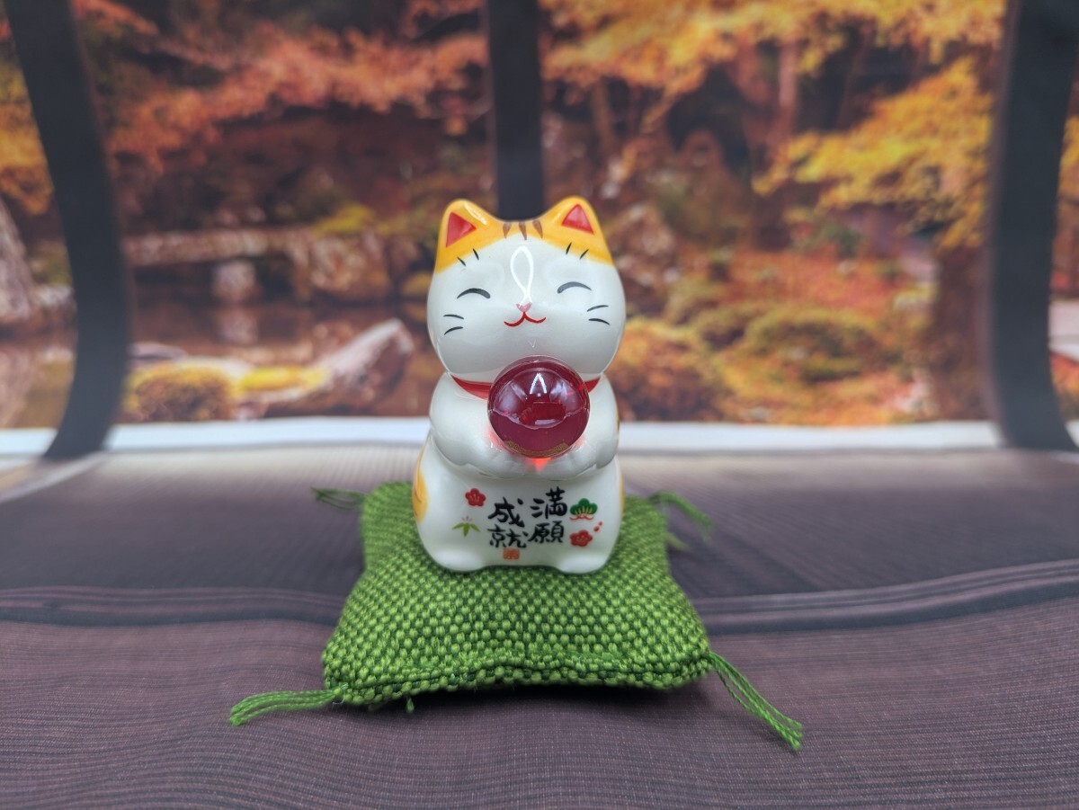 - 縁起物 招き猫 彩絵玉もち招き猫 満願成就 座布団付き 薬師窯 しあわせこいこいやってこい