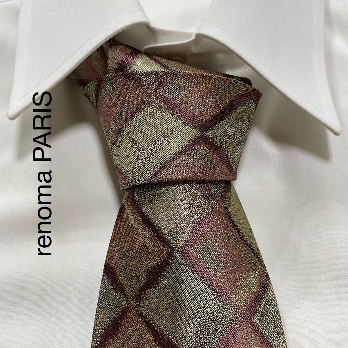 - renoma PARIS レノマパリス パターン柄 ジャガード シルク ネクタイ ローズ パープル ベージュゴールド TG1650