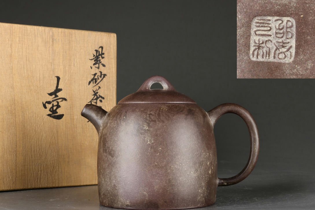 > ▼渡鶴羽▼A0822時代朱泥 秦權紫砂壺 在銘 邵春元 清時代 在銘 /紫砂 煎茶道具 朱泥 茶壺