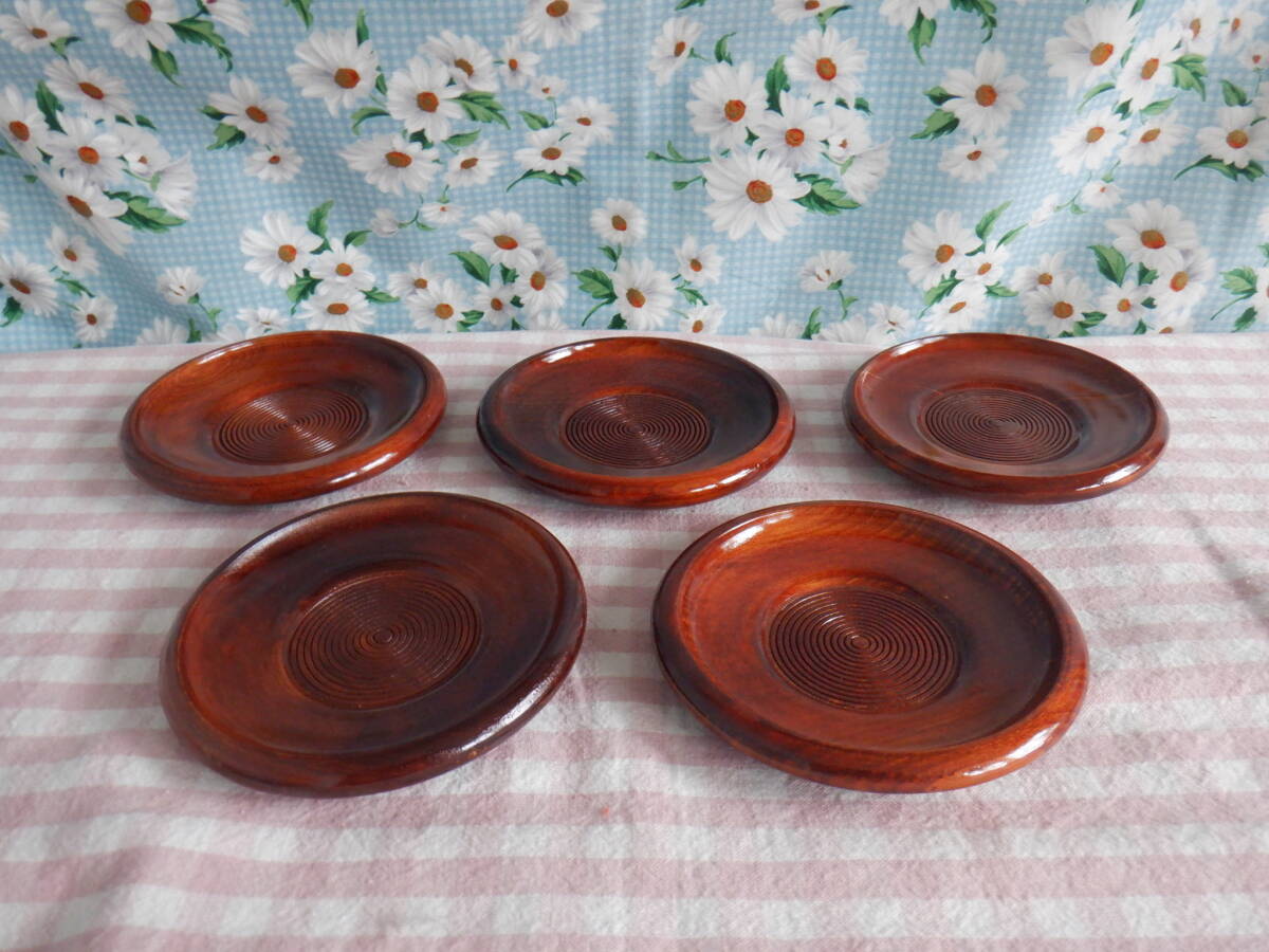 - E6『漆器 茶托~5枚セット 木製品 伝統工芸 和食器』~中古 箱なし 産地不明 長期保管品